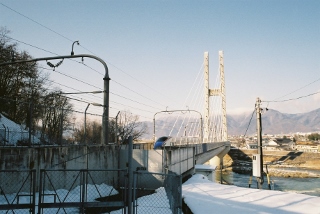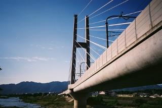 上田市 ハープ橋 東信(長野県の東側) 2016年11月25日 さて、上田市はハープ橋です。 さて、「ハープ橋」なんて名前があったんですね。 グーグルマップで、「上田、橋、新幹線」で検索できました。 ここは長野方面から丸子に行く際に、 いつも気になっておりました。 だた、見学するような建造物ではないんですね。 もちろん駐車スペースも、一般人がアクセスするような道も無し・・・ でもある時意を決して道路沿いのわずかなスペース車を止めて 、 近くまで行ってみると、一発でお気に入りの場所になりました。 広角レンズを入手すると、まずここでレンズの確認を行います。 標準レンズでもまず一発目はここで撮影というパターンも数多くあります。 また望遠レンズであっても、圧縮効果の確認をしたいときにも良く行きます。 なんだ結局どのレンズであっても良く行く場所なんですね。 試し撮りとはいえ、常にかっこいい画像が得ることができます。 ちなみにこれは75mm。 で、こんな場所、誰も行かないだろうということで、 常に空いている、で行けば独占状態 ということで、ますますお気に入りだったのですが、 或る時のこと、いつものわずかな駐車スペースに軽トラが・・・ ついにライバル出現です。 「俺だけの・・・」といったプレミア感もなくなり、ちょっと焦り気味。 しょうがなくその場所をやりすごすと、 数十メートルさきに、またもやわずかな駐車スペースを発見しました。 さっそく止めて近づいてみると、こちらもなかなか良いアングル。 こちらフィルムカメラで撮影の画像です。 ちょっと露出オーバー気味ですが、新幹線が写ってますので・・・ でさらに、こちら側からのアングルを追及すると、 こんな画像が得られます。 200mmです。 この場所って、 絶対撮り鉄の皆さんにはお馴染みの場所なんだろうなあ・・・・ うわ・・・グーグルマップの画像も良く撮れてる・・・ アクセス PR